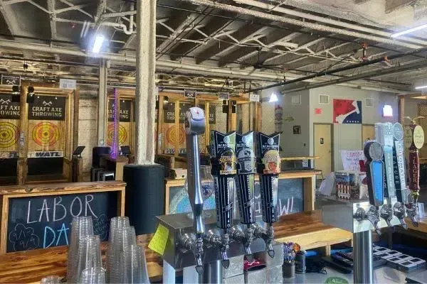 Up to 4 throwers per lane. Most groups stay longer than they planned. No outside drinks — we have a bar.